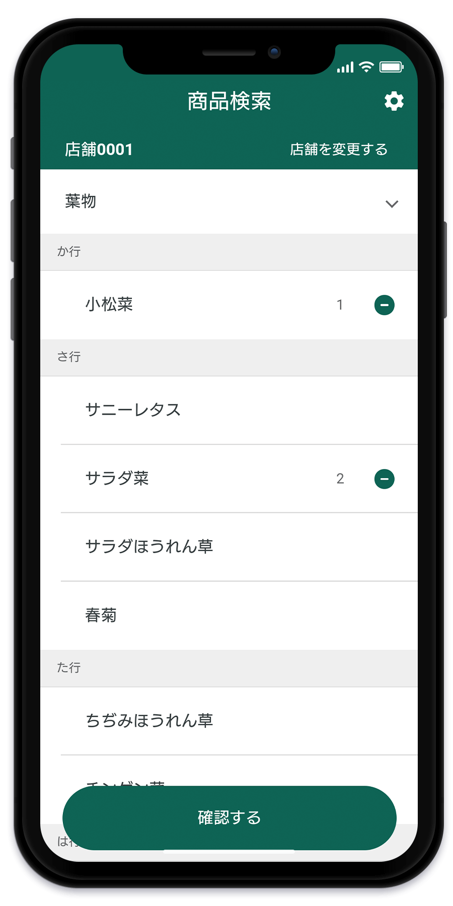 - 管理画面にて、商品をカテゴリ別に登録することができます。商品が増えた場合にも柔軟に対応でき、現場での打ち込みをスムーズに行う手助けになります。